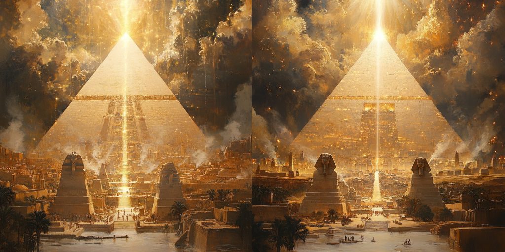 Ra paaiškinimas: Pasak Ra, piramidės veikė ne tik kaip fiziniai statiniai, bet kaip dvasiniai rezonatoriai, skirti harmoningai sąveikai tarp kosminių energijų ir žemiškos realybės. Piramidės veikia kaip „nušvitimo mašinos“, kurios padeda tiems, kurie yra pasirengę evoliucionuoti, įgyti prieigą prie aukštesnės sąmonės dimensijų.